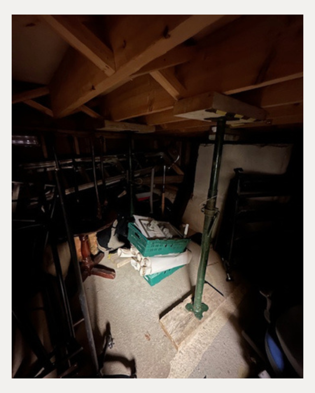 Much of the work took place out of sight, beneath the stage, where careful access, load management, and protection of original materials were critical.