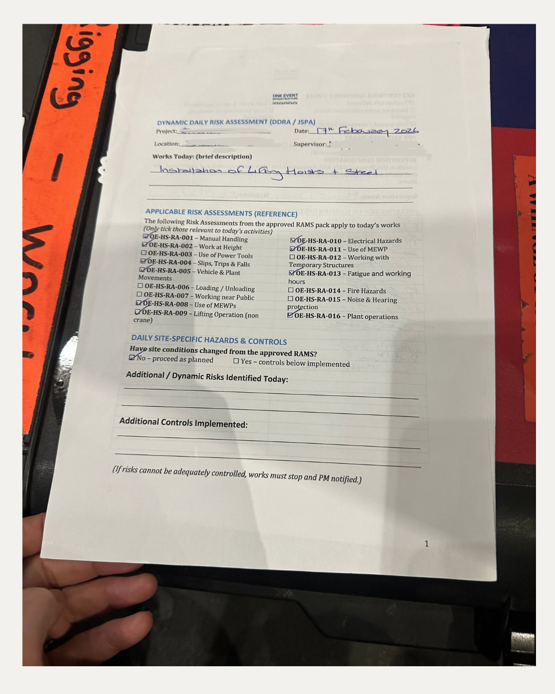 Daily Dynamic Risk Assessments prior to each shift